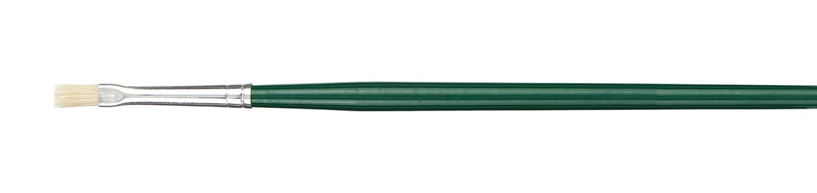 Pour goauche, acrylique et peinture à l'huile Soies de porc Modèle Gussow Lot de cheveux avec bonne absorption de la peinture et longue durée de vie Virole: aplatie, sans soudure, aluminium poli Manche: long, bois naturel, laqué vert Longueur: 280 -300 mm