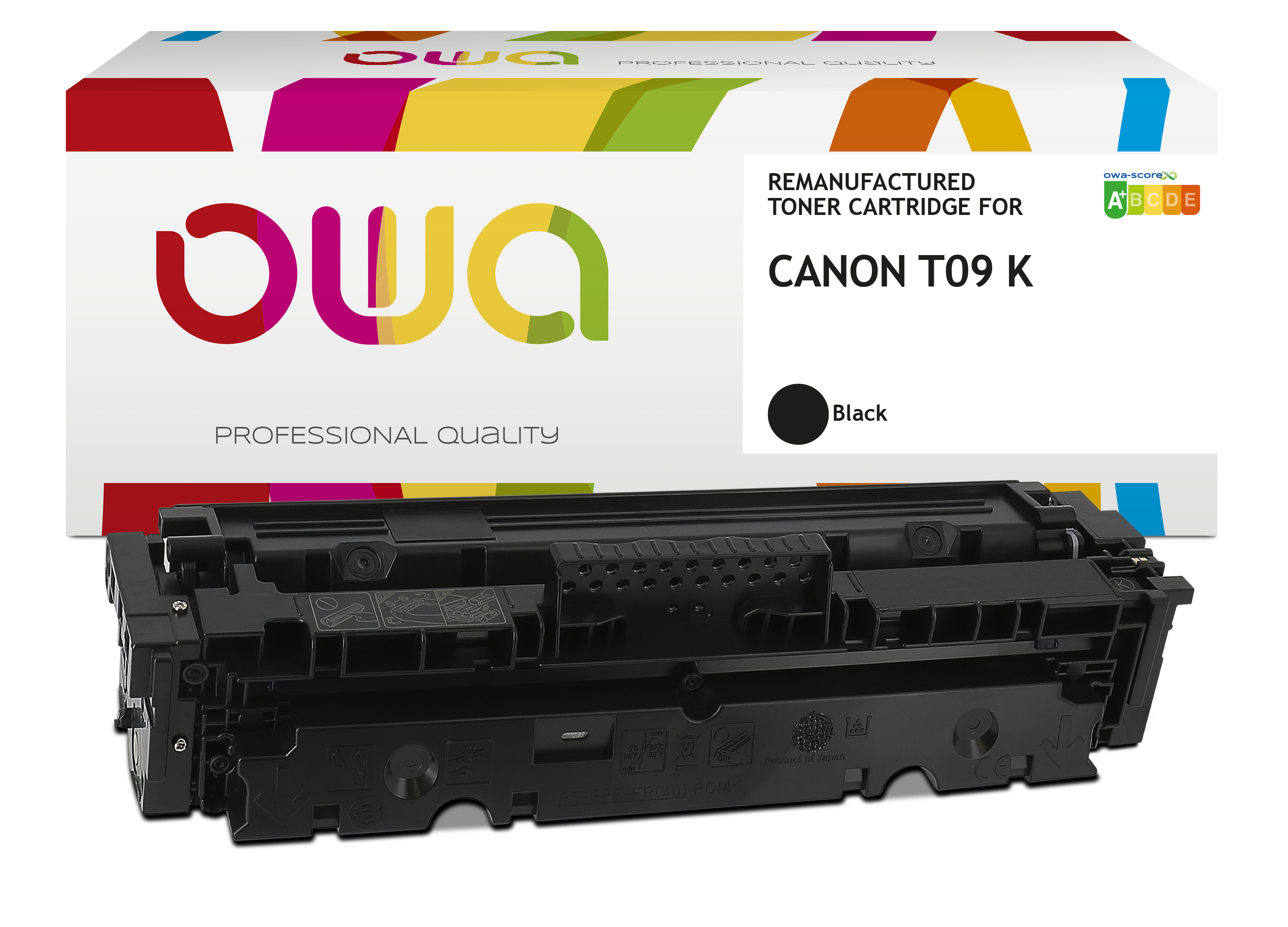 Autres cartouches avec les mêmes compatibilitésToner remanufacturé OWA - haute capacité - pour CANON T09 Cà partir de115 € htCartouche toner Canon T09 noirà partir de75,95 € htCartouche toner Canon T09 bleuà partir de119 € htCartouche toner Canon T09 rougeà partir de119 € htCartouche toner Canon T09 jauneà partir de119 € ht