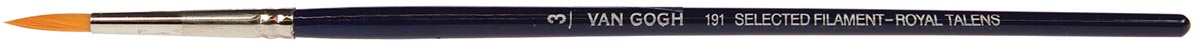 Technique: aquarelle et gouache. Poil: fibre de polyester dorée. Forme ronde. Virole en laiton nickelé sans soudure. Manche court, laqué bleu foncé, longueur 155-200 mm. Pinceau de forme pointue, pour des fins très diverses. Convient parfaitement pour la réalisation des détails avec les peintures Decorfin. Le poil, appelé selected filament, est très résistant à l'usure et très souple. Chaque pointe de pinceau est protégée par un petit fourreau en plastique.