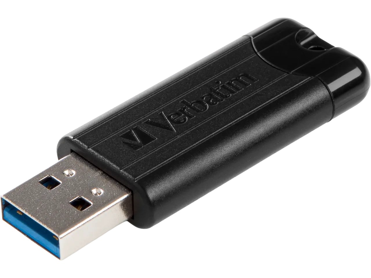 La clé USB Store 'n' Go PinStripe de Verbatim est rétractable, ce qui protège la connexion USB lorsqu'elle n'est pas utilisée, sans nécessiter de capuchon qui se perd facilement.