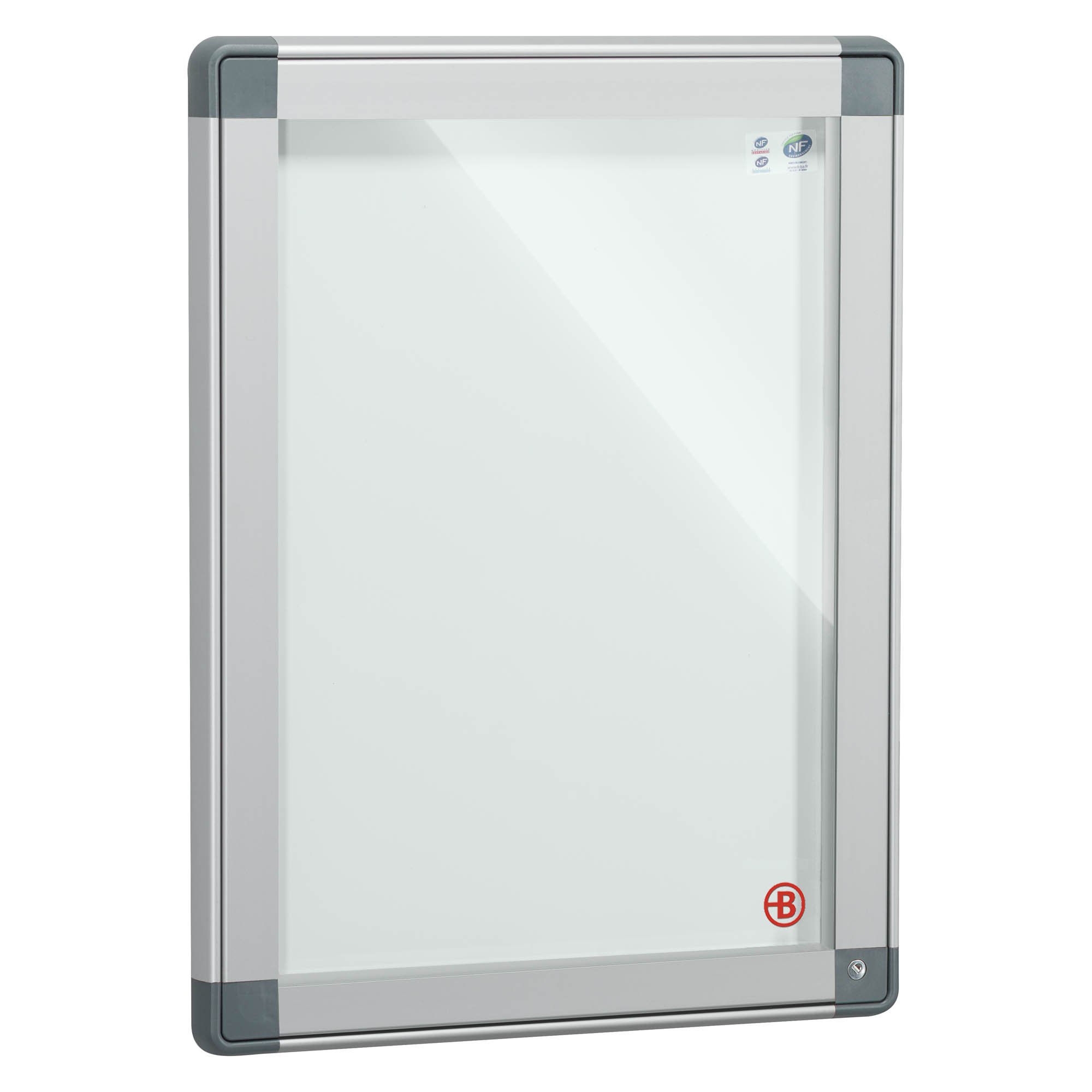 Elle est faite avec un cadre profilé en aluminium laqué polyester avec des coins arrondis pour un rendu élégant. Le tout proposé avec un fond tôle pré-laqué gris pour être effaçable à sec tout en permettant un affichage par plots magnétiques. Vos affichages seront bien présentés !
