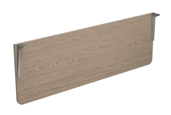 Voile de fond réalisée en aggloméré épaisseur 18 mm, en placage bois épaisseur 0,6 mm, avec le chant en bois épaisseur 1 mm, coins rayonnés et et verni transparent mat à pore semi-ouvert. Densité panneau: 720/790 kg/m3. Supports latérales pour la fixation en tôle d'acier, décapée, épaisseur 3 mm, vernis à poudre époxy.