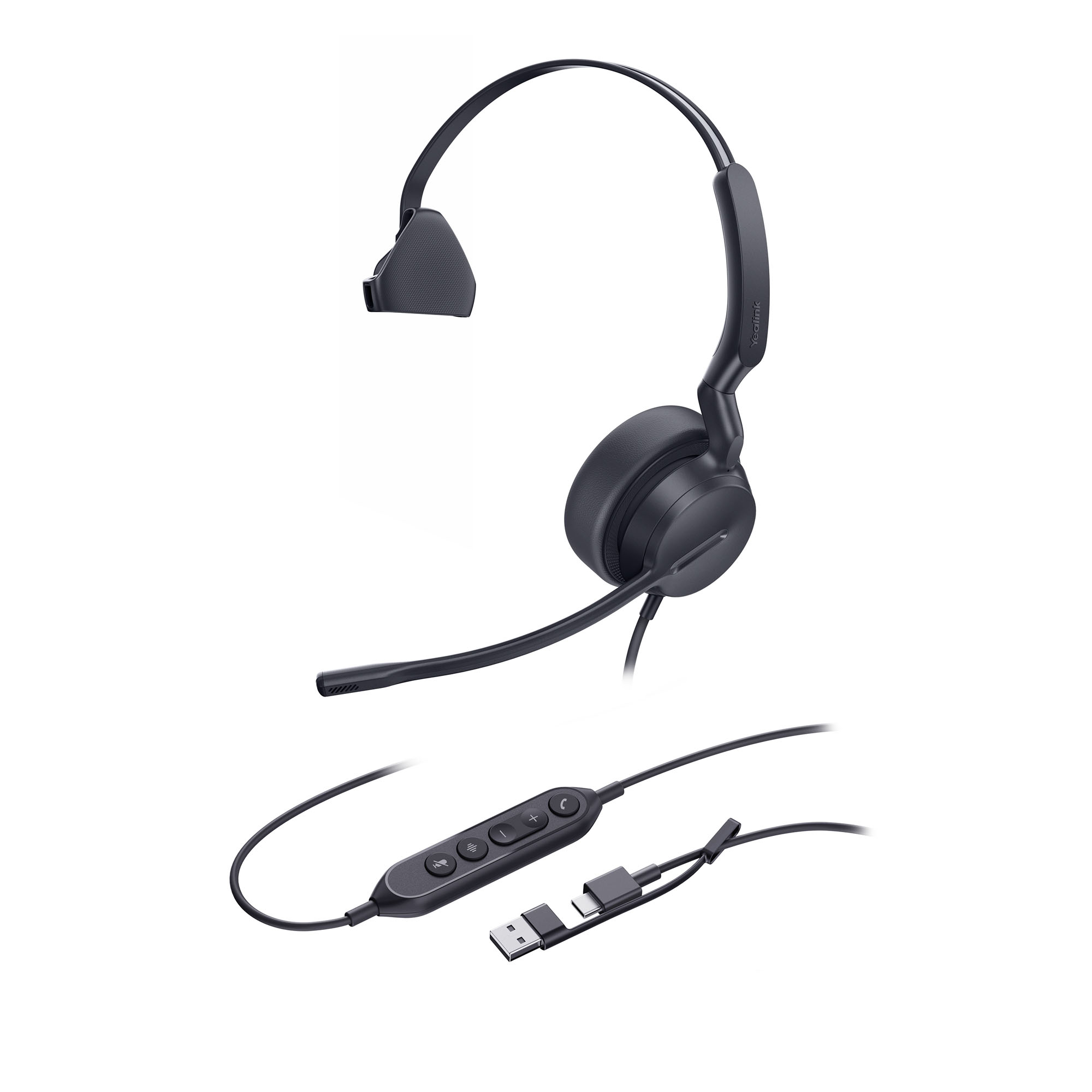 Le Yealink UH42 a été étudié pour offrir à son utilisateur un confort de port optimal, grâce aux coussinets rembourrés et à son arceau souple. La télécommande intégrée au câble permet d'accéder aux fonctions principales : gérer le volume, décrocher / raccrocher, mettre en sourdine.